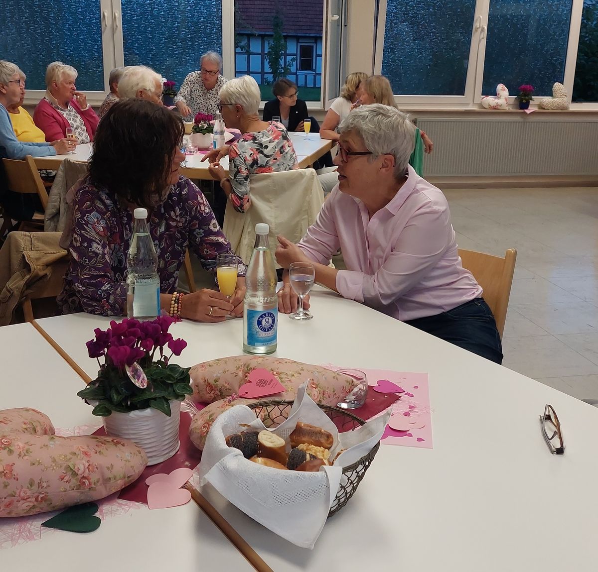 Herzlich begrüßt wurde u.a. Frau Pfarrerin Niklas Bergmann und Frau Sandra Riechers, Pflegdienstleiterin der GRN Klinik in Weinheim. Diese berichtete von den vielen Frauen, die sich nach der OP über die Herzkissen freuen. Die Kissen sollen helfen, den Druckschmerz nach dem Eingriff zu linden. Wenn es die betroffenen Frauen im Krankenhaus auf ihrem Bett vorfinden, signalisiert es aber auch Anteilnahme. Maria Dreißigacker von den Landfrauen Mörlenbach erzählte von den Nähtreffen und auch vom Spaß, den die Frauen dabei haben.