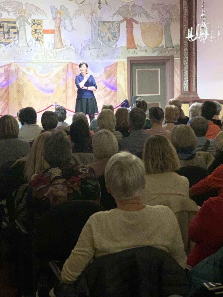 Mit 123 Frauen und 2 Männern war der wunderschöne Kurfürstensaal gut gefüllt, und die Gäste genossen einen kurzweiligen Abend voller intelligenter Pointen und überraschender Erkenntnisse.