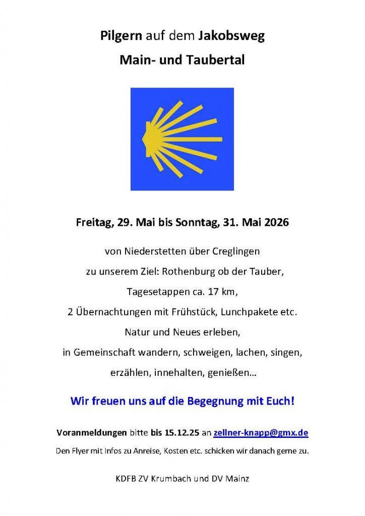 Pilgern auf dem Jakobsweg Main- und Taubertal im Mai 2026
